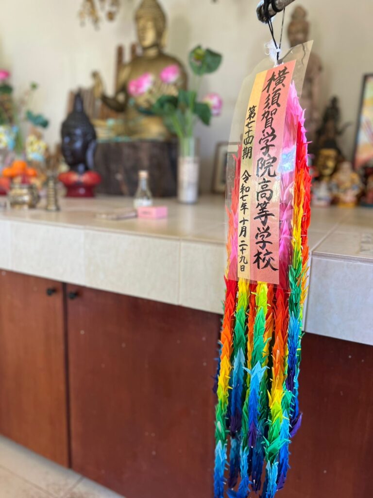 2025年10月29日、横須賀学院高等学校の生徒さん達にご来苑いただきました。 生徒さんたちのお心のこもった千羽鶴を御奉納くださいました。 お気持ちをしっかり届けたいと思います。 ありがとうございました。